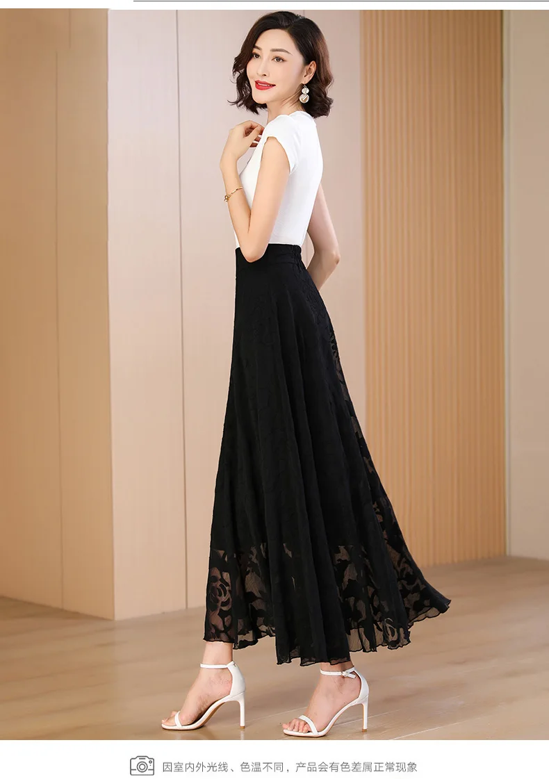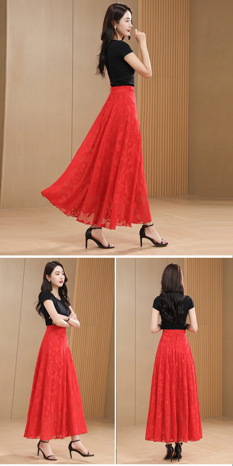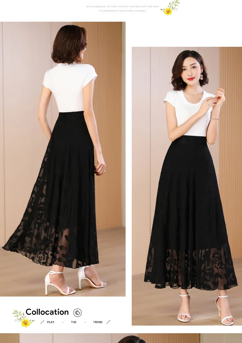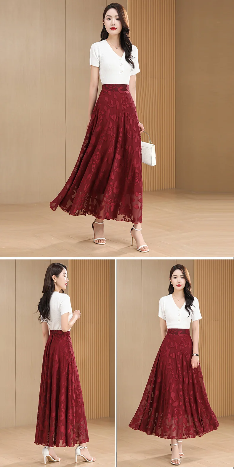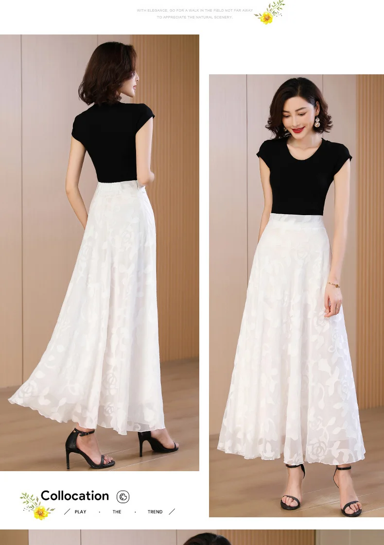 Descubra a peça que vai transformar o seu guarda-roupa e elevar o seu estilo em qualquer ocasião: a Novo Mulheres Elegantes Jacquard Saia de Chiffon Verão Moda Cor Sólida Cintura Alta Saia A-line Casual. ✨